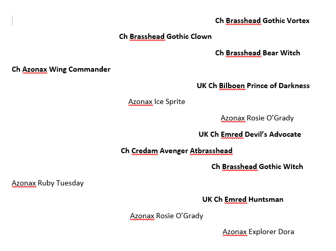 Puppies Litter born 10th June 2019. By Ch Azonax Wing Commander x Azonax Ruby Tuesday 1 dog and 4 bitches The monsters beating up Granny Azonax At The Oche — 3.5 months Azonax At The Oche — 7.5 months Tilly at 7 months (Brasshead Crystal Queen) Share this: Share on X (Opens in new window) X Share on Facebook (Opens in new window) Facebook Like Loading...